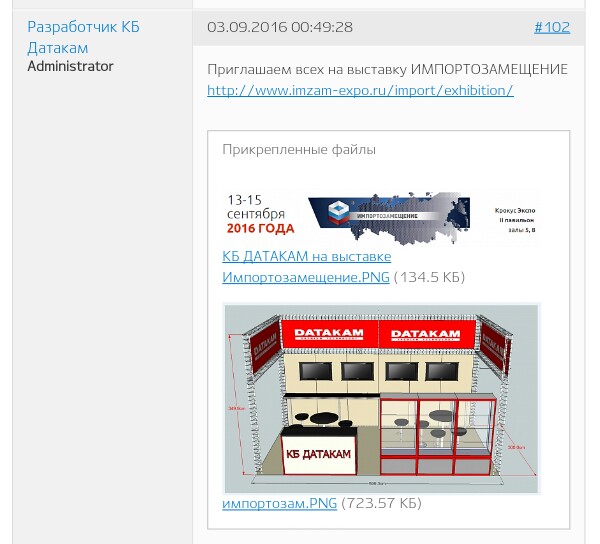 Думаю, где приобретён регистратор значения не имеет, это же не обмен или возврат, а платная услуга. В посте про установку GPS-модуля в версию ECO указано, что регистратор куплен у дилера, просто я затёр его названиие (согласно правилам форума). Жителям Мосвы, Питера и их окрестностей проще в плане возможности личного визита в сервис. Спойлер: mapcam Подтверждаю, приложение весьма эффективно, использую за неимением адекватной базы и морально устаревшим "Спидкамом" G5. Тут есть одно но: для полной эффективности надо использовать не стандартную, а расширенную базу (в ней есть "камеры контроля скорости в спину" и "комплекс контроля ПДД", в этот тип сейчас переимоновывается достаточно большое количество стационарных камер контроля скорости). Расширенная база доступна либо активным участникам проекта (с кармой +5 и более), либо за деньги. Спойлер: выставка "Импортозамещение" Ссылка на сайт выставки: http://www.imzam-expo.ru/import/exhibition/ можно зарегистрироваться и пройти бесплатно.