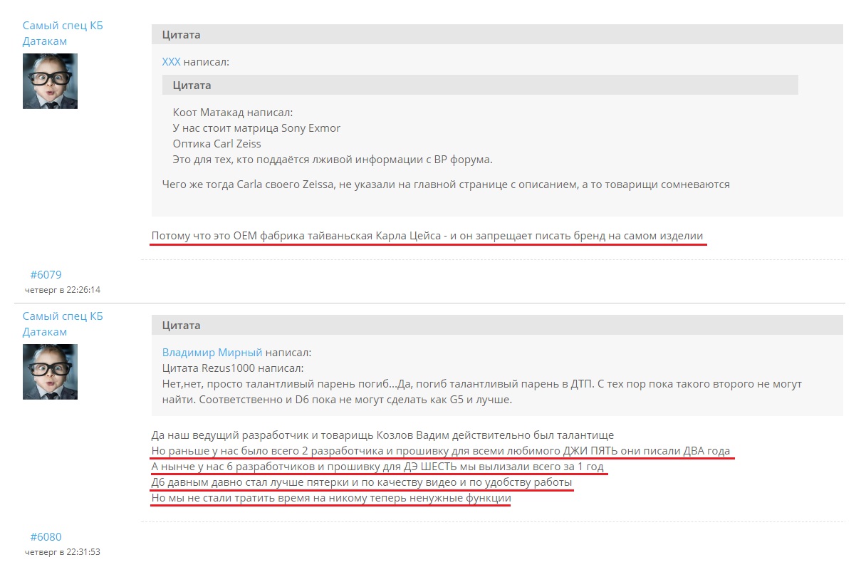 Я с Вашего позволения добавлю немного. Дело в том что прошивка на G5 была пересажена с предыдущей модельки брата близнеца DOD..на котором ДК нацарапали свой логотип. И Вадим уже тогда написал на него прошивку,...G5 же получил уже готовое решение...только немного плюшечек накидал Вадим в него...и получилось весьма здорово. А тут 2 года пилят, пилят...а толку ноль,...где G5 и где их провальный D6. Небо и земля. Я уже даже не говорю что более половины они сочли не нужным,...хотя люди ждали крутого продолжения версии 5 го рега. А получили ...кусок пластика за 18800....