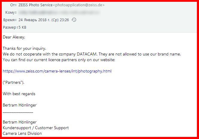 Вот в чём-чём, а в оперативности немцам не откажешь... Ответ представителя Carl Zeiss: К запросу были приложены ссылки на сайт Датакама и данные скриншоты: Спойлер Полагаю, маски сброшены...