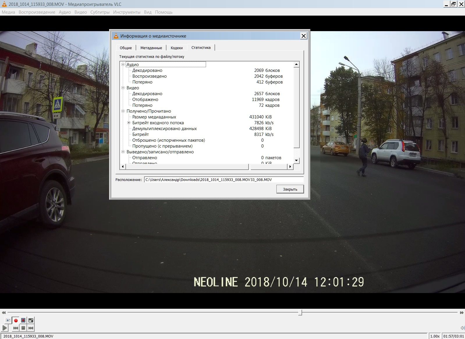 Посмотрел. Да, есть, это не микропаузы, это дублирование предыдущего кадра, причем не постоянно, примерно через 3-6 сек. Есть ли такое у других аппаратов - вопрос. И скорее всего это особенность кодирования, но это - или заложено, либо баг прошивки именно вашего регистратора. "Выловил" покадровым просмотром в VLC плеере, есть там кнопочка такая "Кадр за кадром": Спойлер нажимаем-щелкаем по кнопке, смотрим на отображение времени на видео, за 1 сек и получается 30 кадров/ нажатий При просмотре заметно, что иногда кадр не изменяется Спойлер и еще информация в плеере "О медиаисточнике">Статистика: Отображено 11969 кадров, "потеряно 72 кадров" , насколько что это дает, ответить не могу, надо анализировать видео с других регистраторов. Если просто считать 3 минуты х 60 секунд х 30 кадров в секунду получается 5400...