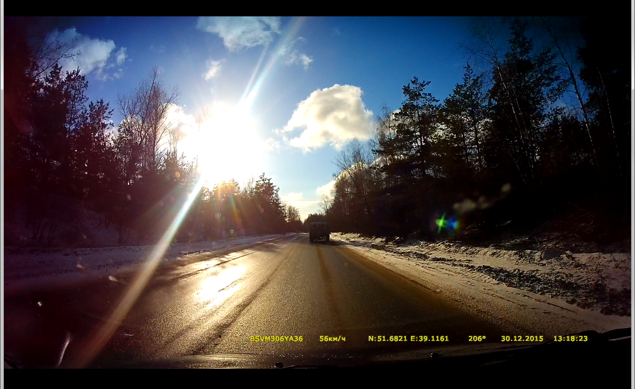 @Alex58 ,видео у тебя достойное.Для себя поставил 1920 на 1080(30 кадров) экспокоррекция день +0,3 и ночь -1,точка,остальное по умолчанию. Видеокартинка на данный момент оправдывает мои ожидания от ВР,но хочу ещё лучшего. Особая благодарность @Kaliningrad за последние изменения.Цветастость,раздражающая вначале,сегодня приукрашивает картинку наполняя душу радостью при гадких пейзажах текущего времени года. Вот как сейчас я выезжаю солнцу в лоб А так было с только что вышедшей прошивкой в начале декабря