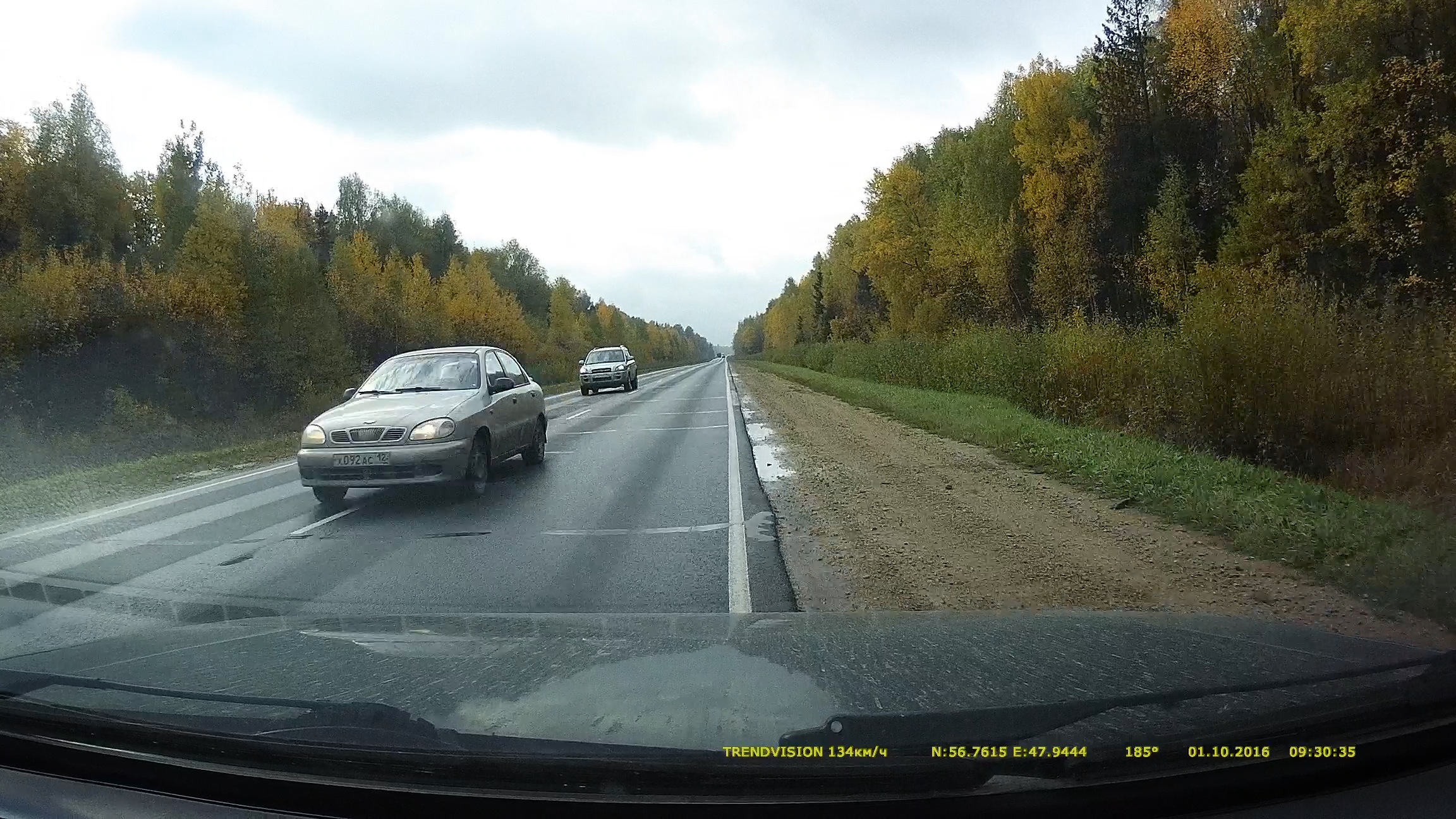 Встречная машина близко, освещения много, номера чистые, режим картинки - узкая (если я правильно вижу), а не широкая (как обычно в городе). От 100+ суммарной скорости вероятность чтения встречных номеров резко падает при 30FPS и гораздо выше при 60FPS. Поэтому кому что важно. P.S. Не советую ездить на таких скоростях, цепляя обочину. Можно уши сделать.
