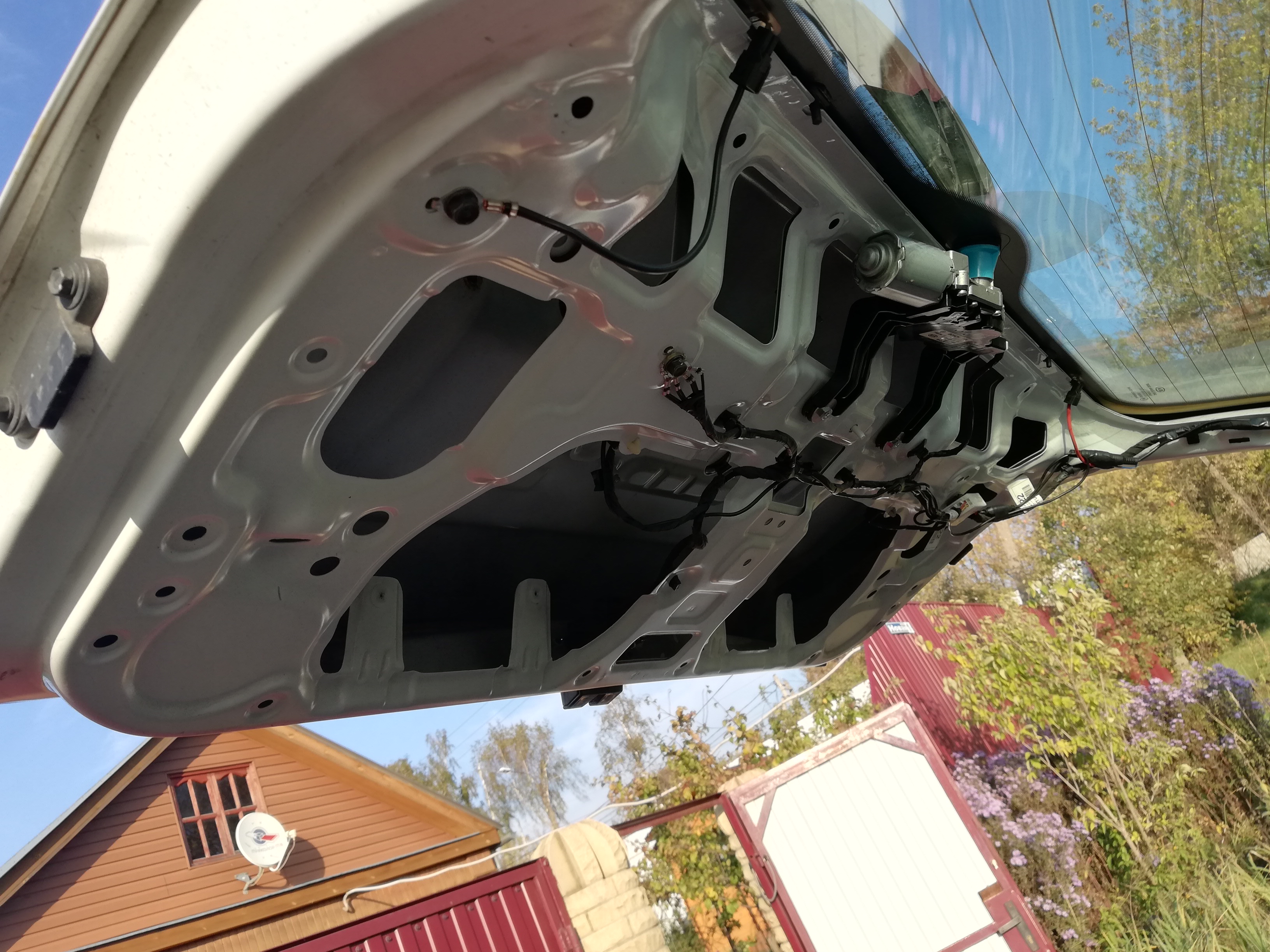 Можете меня поздравить! Сегодня выдался погожий денёк и немного поспав после ночной смены наконец установил заднюю камеру. Небольшой фотоотчёт о проделанной работе: Спойлер: инструмент и расходники Очень важный компонент: Спойлер: подготовительные работы Кабеля осталось на вид около 1 метра, может чуть меньше, хотел поставить камеру повыше, но штекер упирается в отбортовку и идёт на излом: В обшивке 5-й двери пришлось сделать пропил для кабеля: Спойлер: готовый результат Фото вида снаружи не очень удалось: Ждите видео с задней камеры.